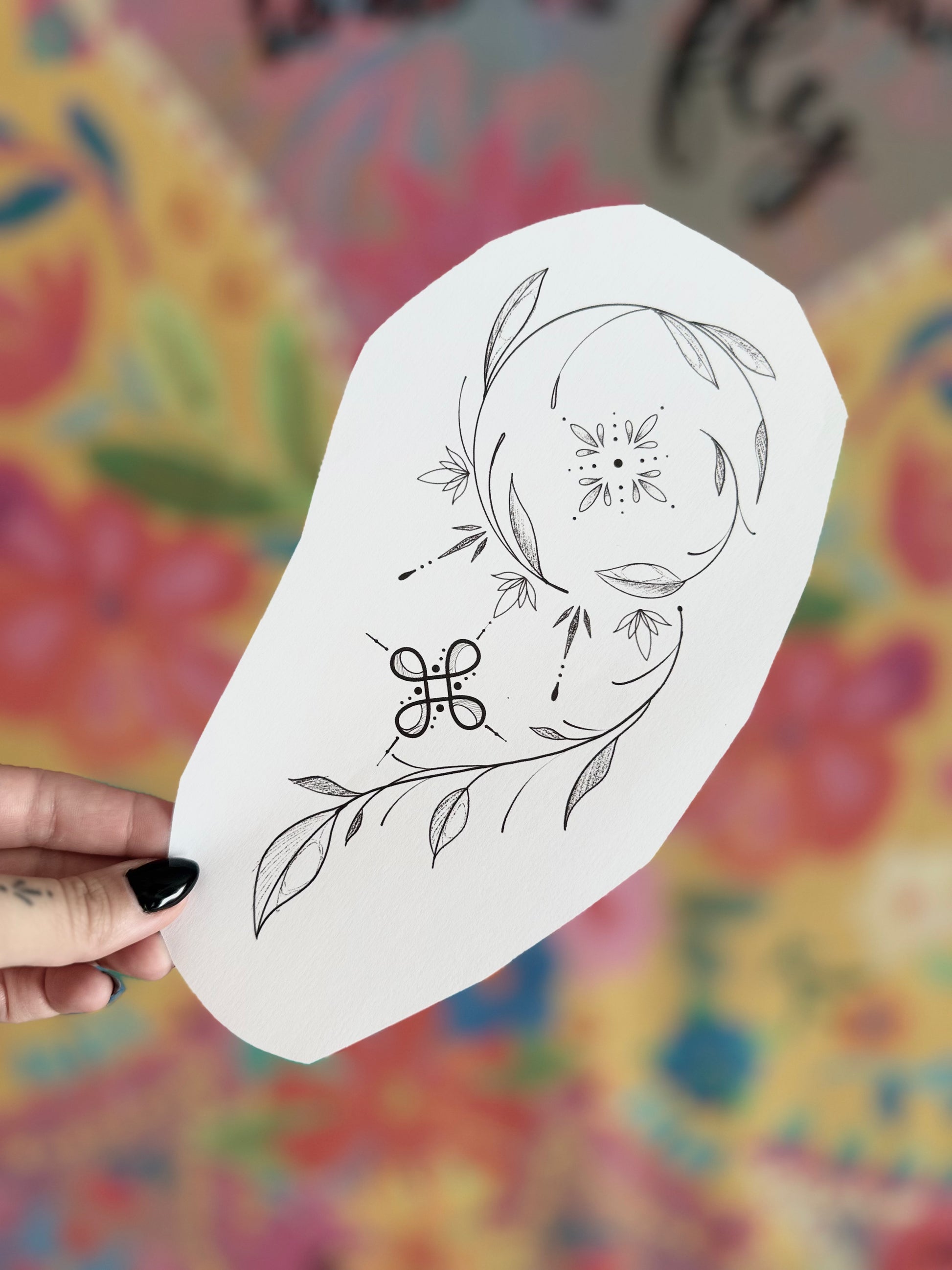 Un tatouage à la fois ornement et talisman, pensé pour celles qui souhaitent porter un symbole vivant et intemporel sur leur peau.